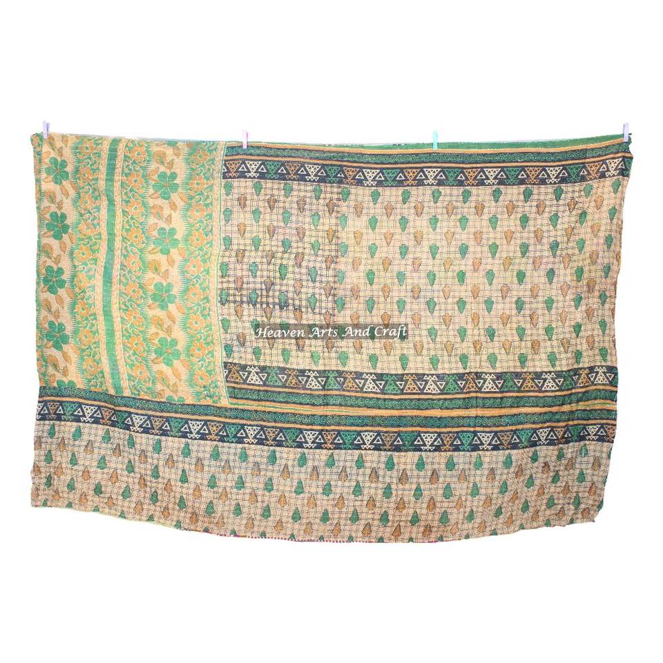 ผ้าห่ม Kantha วินเทจแบบดั้งเดิมผ้าฝ้ายพิมพ์ด้วยมือผ้าฝ้ายทำมือสไตล์อินเดียวินเทจเย็บมืออินเดีย