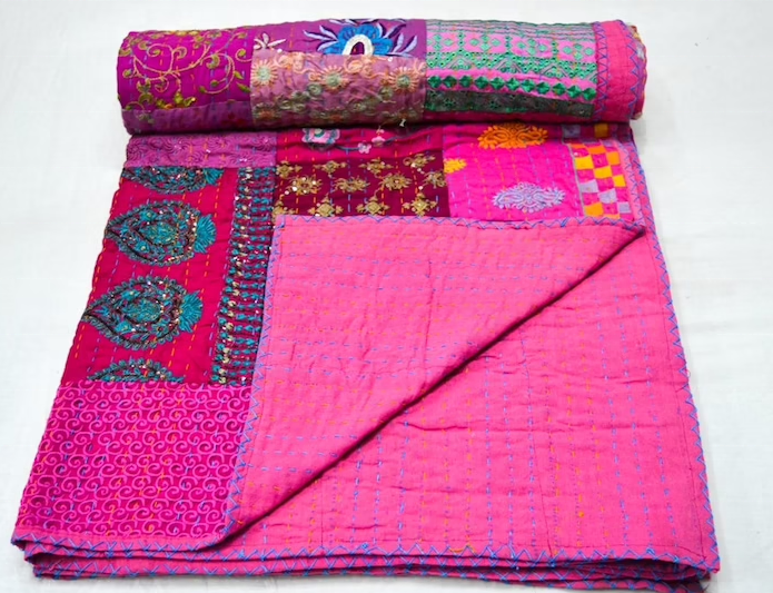 Traditional Vintage Patchwork Embroidered Kantha Quilts Colorful Hand Embroidered Kantha Quilts Blankets OEM Cotton Home Decor