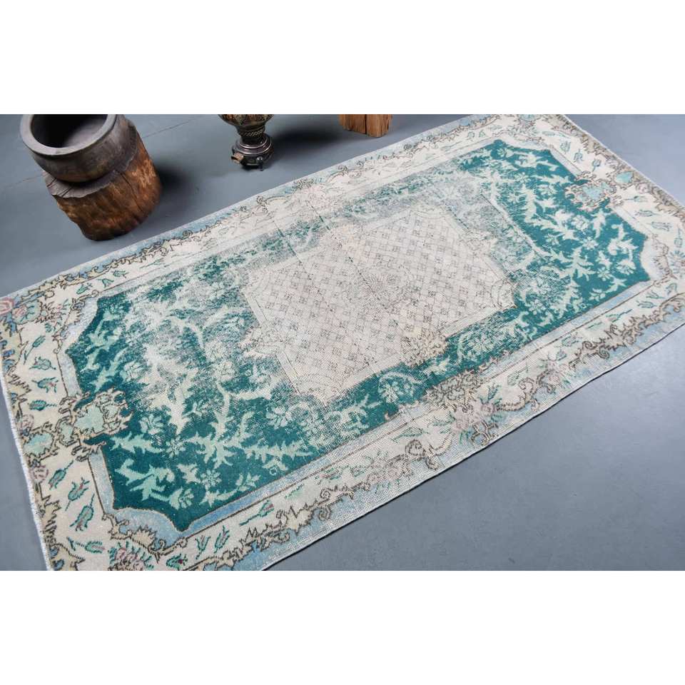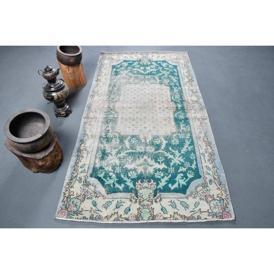 Traditional Vintage 3.7 X 7.2ft Turkish Rug Green White Patchwork Flat Weave Wool Latex for Teen Living Room Decorations