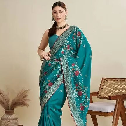 ผ้าส่าหรีผ้าฝ้ายผสมไหมสำหรับผู้หญิง ลายพิมพ์ฟอยล์ สไตล์อินเดีย ปากีสถาน เหมาะสำหรับงานแต่งงาน งานปาร์ตี้ แห้งเร็ว ทุกโอกาส