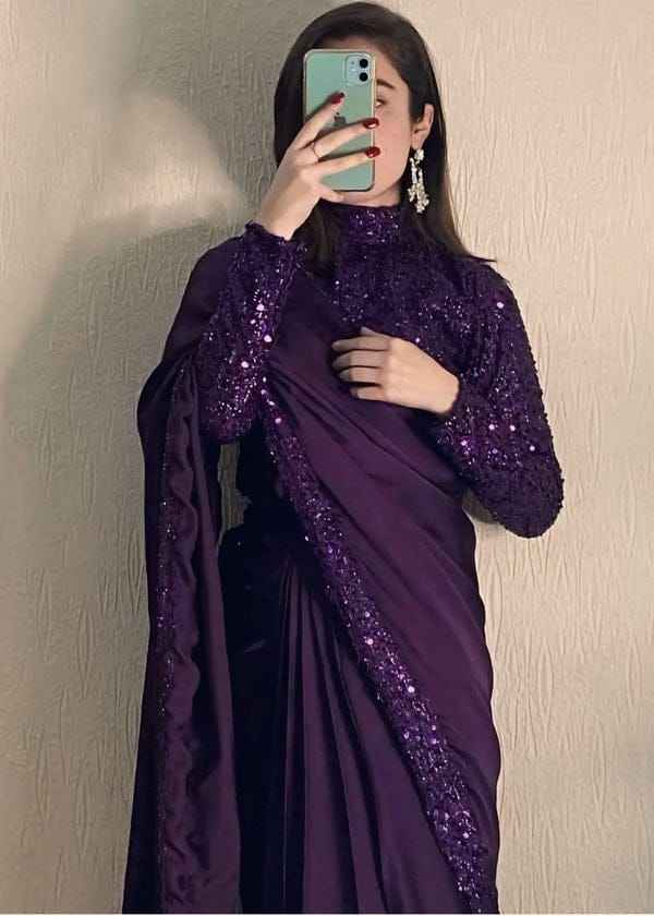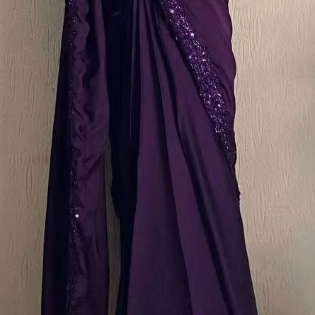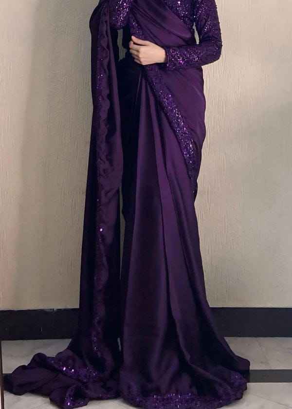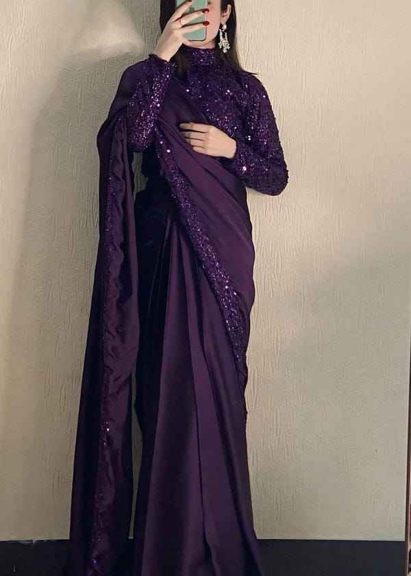 ชุดส่าหรีงานแต่งงานแบบดั้งเดิม ผ้าโพลีเอสเตอร์ปักลายหนัก งานออกแบบสำหรับงานแต่งงาน งานปาร์ตี้ เทศกาล ทรงยาวคลุมเท้า ทันสมัย