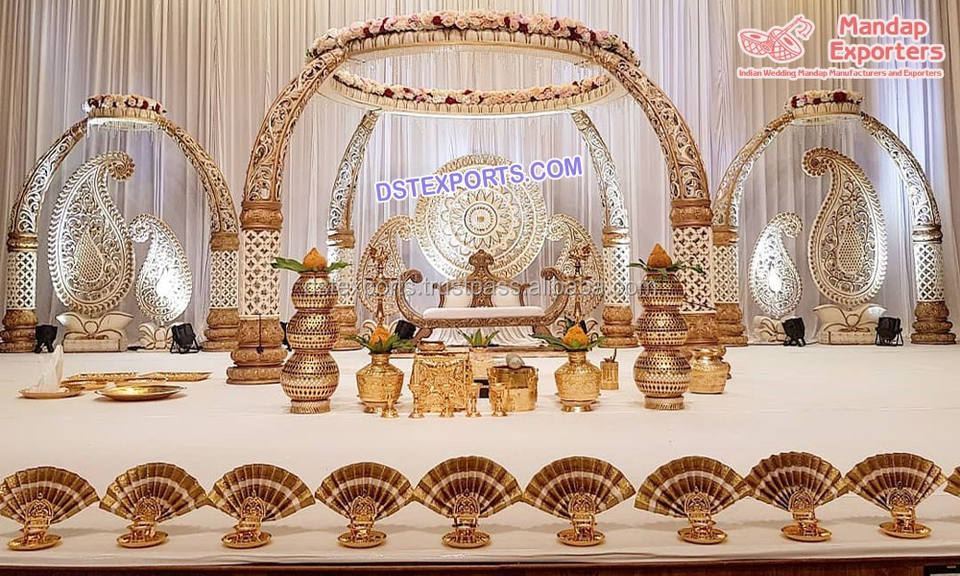 ชุดตกแต่งงานแต่งงานแบบดั้งเดิมรูปปั้นพระกฤษณะพระราชวังแมนดา็ปแบบอินเดียแมนเด็ปตกแต่งงานแต่งงานสีทองสไตล์อิตาลี