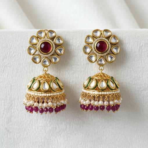 ต่างหูงานแต่งงานแบบดั้งเดิมประดับด้วย Kundan พร้อมรายละเอียดงานฝีมือประณีตเพื่อลุคที่สง่างาม สำหรับผู้ซื้อขายส่งจากโรงงานทั่วโลก