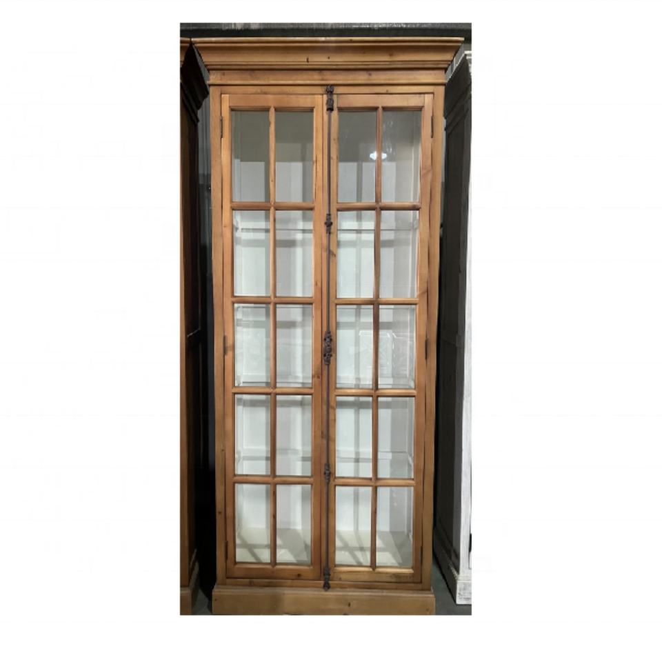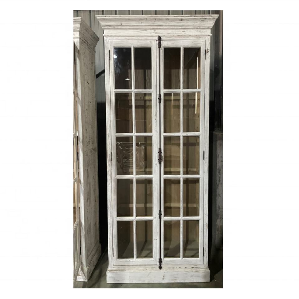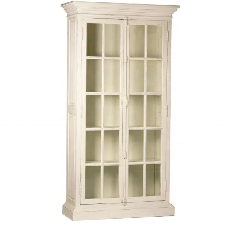 ตู้ข้างครัวไม้สีขาวแบบดั้งเดิมพร้อมบานประตูกระจก