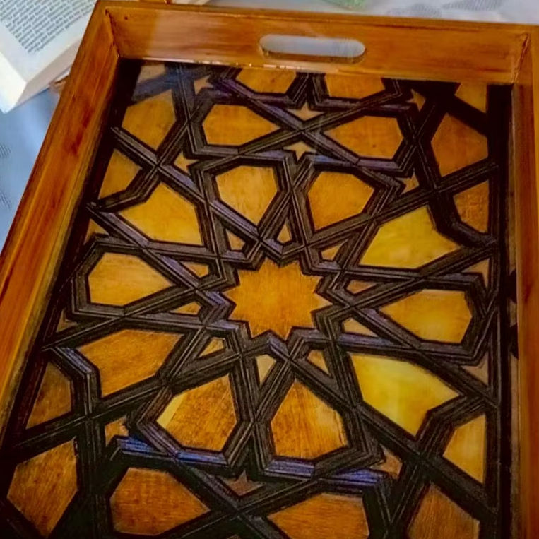 ถาดเสิร์ฟเคลือบลายอิหร่านทรงสี่เหลี่ยมผืนผ้าทำจากไม้