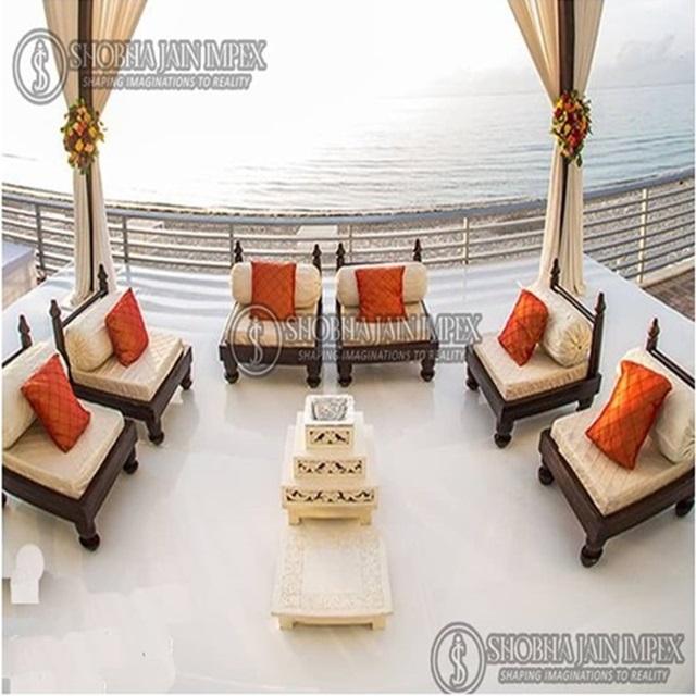 เก้าอี้งานแต่งงานแบบดั้งเดิมทำจากไม้สุดหรูทันสมัย ดีไซน์ทรงสี่เหลี่ยม จากเดลี อินเดีย สำหรับงานปาร์ตี้ในร่ม โดย Shobha Jain Impex