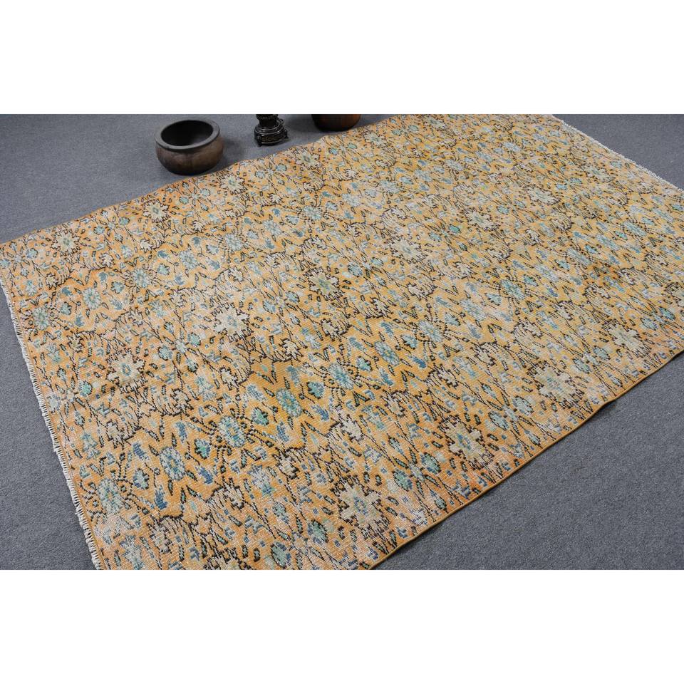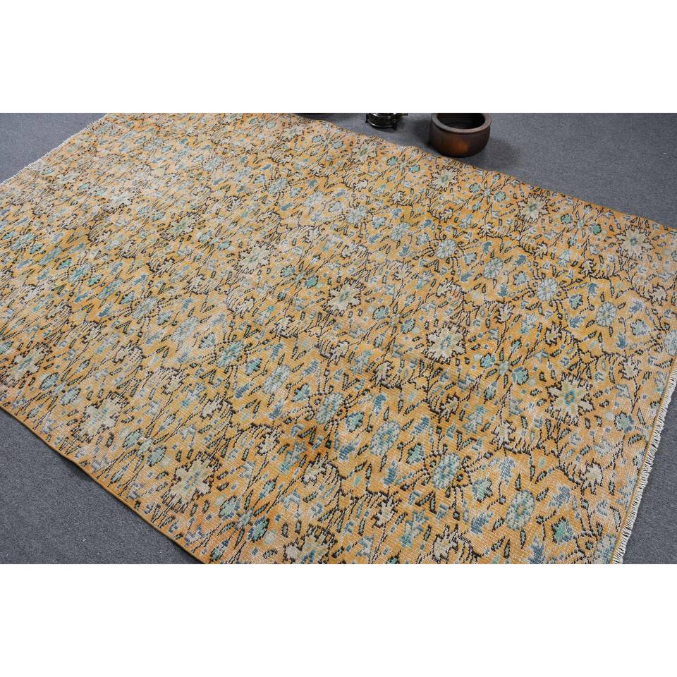 พรมตุรกีโบราณสีเหลืองสีน้ำเงินแบบดั้งเดิมผ้าวูลสี่เหลี่ยมผืนผ้าดีไซน์งานเย็บปะติดทำด้วยมือขนาด5.8x8.7ฟุตโถงทางเดินสำหรับห้อง