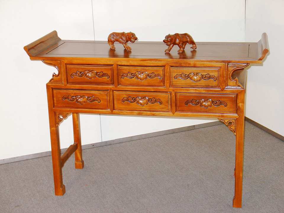 โต๊ะไม้สักโค้งแบบดั้งเดิมและละเอียดอ่อนพร้อม6ลิ้นชักสำหรับทางเข้าห้องโถงและห้องนั่งเล่น