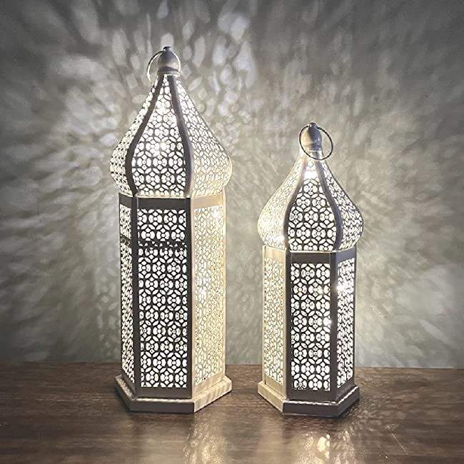 โคมไฟโลหะตกแต่งแบบดั้งเดิมที่มีดีไซน์งานตัดดอกไม้ที่ซับซ้อนเหมาะสำหรับเดือนรอมฎอนและในช่วงเทศกาล