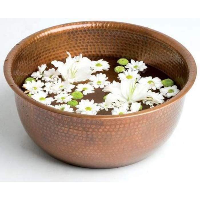 ชามแช่เล็บเท้าทองแดงแบบดั้งเดิมพร้อมพื้นผิวงานฝีมือแบบเรียบง่ายสำหรับประสบการณ์สปาที่หรูหรา