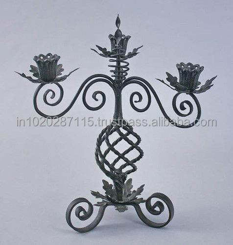 เชิงเทียนเหล็กหลอมด้วยมือแบบดั้งเดิมที่มีคราบโบราณเหมาะสำหรับวัสดุเชิงประวัติศาสตร์หรือของสะสมโบราณ