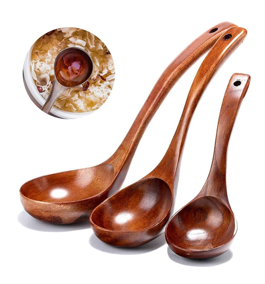 เครื่องใช้บนโต๊ะอาหารที่ทำจากไม้ธรรมชาติช้อนตักซุปทัพพีตักซุปข้าวแบบดั้งเดิมช้อนทำอาหารดีไซน์เนอร์ดู