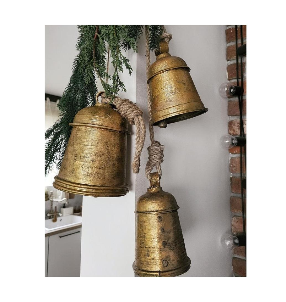 กระดิ่งวัวเหล็กขนาดใหญ่สไตล์ดั้งเดิมพร้อมเสียงสะท้อนโลหะ เหมาะสำหรับตกแต่งบ้านในชนบท