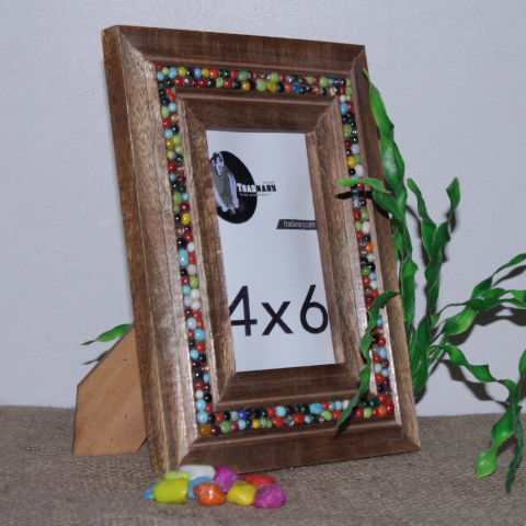กรอบรูปทำจากไม้ธรรมชาติรูปทรงสี่เหลี่ยมผืนผ้าพร้อมดีไซน์หินฝังสำหรับตกแต่งบ้านสำนักงานและโรงแรม