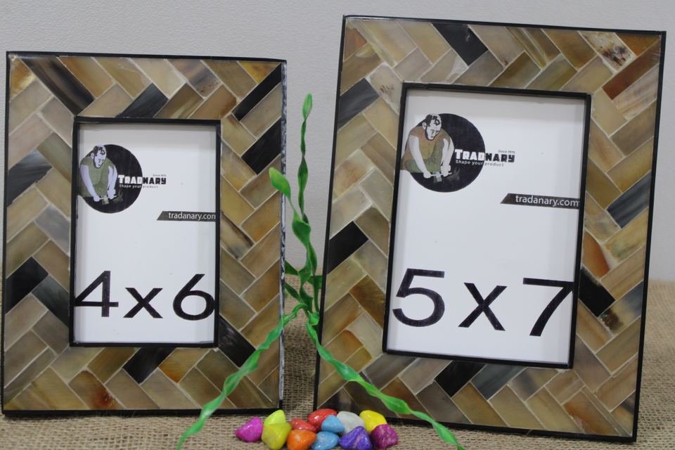 ชุดเขาควายธรรมชาติ2อันและกรอบรูปเรซินออกแบบเรขาคณิตกรอบรูปเรซิ่นทรงสี่เหลี่ยมผืนผ้าตกแต่งบ้านสำนักงานสไตล์ดั้งเดิม