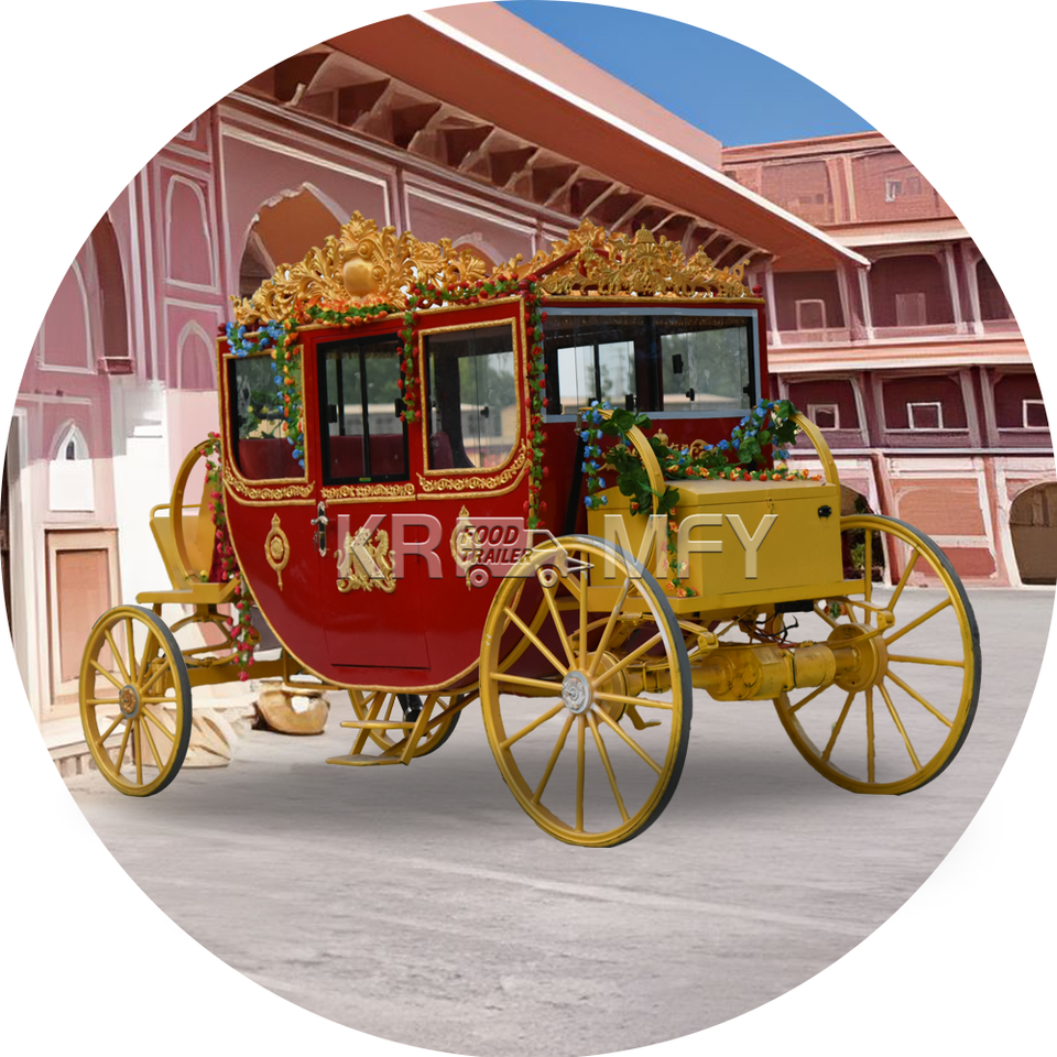 รถม้าสีแดงที่เพิ่งแต่งงานพร้อมหลังคาสำหรับเจ้าสาวรถเข็นสำหรับท่องเที่ยว
