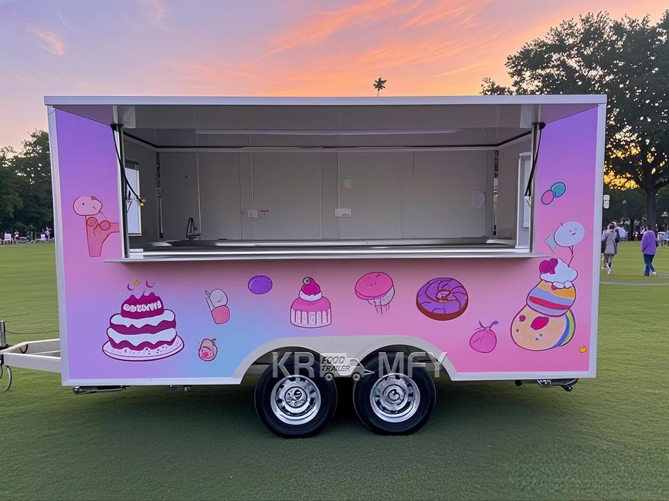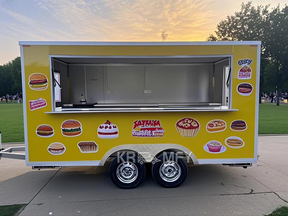 รถพ่วงขายอาหารพร้อมออกแบบแปลนพื้นที่ใช้สอยฟรี ขนาด 4 เมตร ราคาขายส่ง กาแฟ แฮมเบอร์เกอร์ รถพ่วงพร้อมอุปกรณ์ครบครัน รถเข็นขายอาหาร