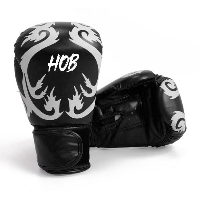 ถุงมือฝึกซ้อมพิมพ์ลายสำหรับการแข่งขัน MMA ถุงมือชกมวยหนัง PU สำหรับนักสู้ที่ใส่สบาย
