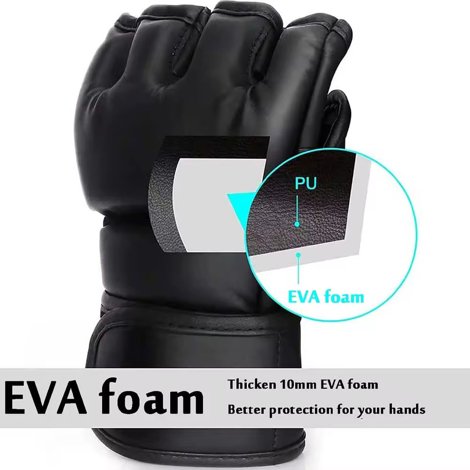 ถุงมือฝึกซ้อมกราปลิง พันซ้อม MMA ราคาถูก ถุงมือ MMA หนังสังเคราะห์แบบกำหนดเอง ถุงมือกราปลิงแบบครึ่งนิ้ว