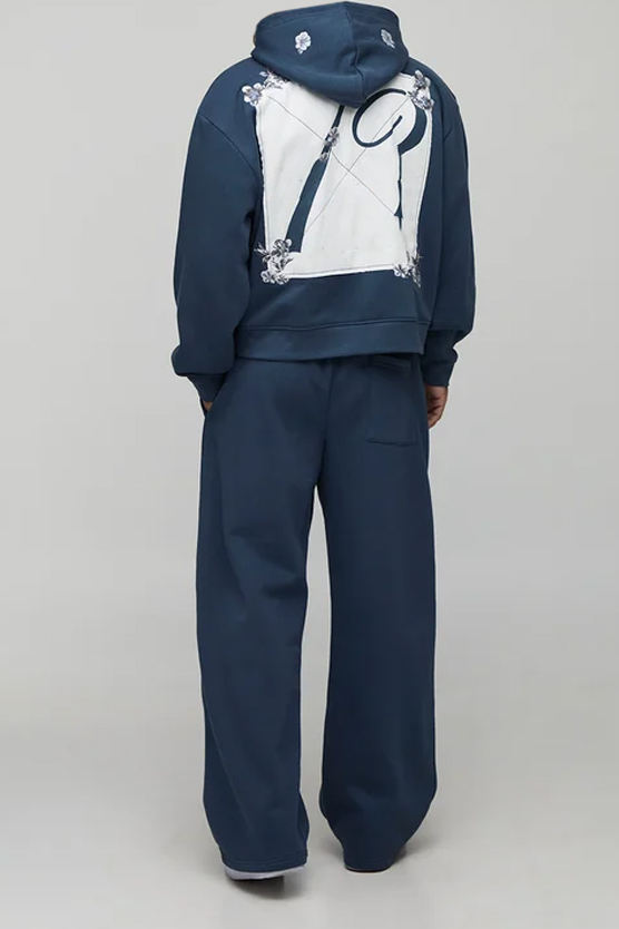 ชุดวอร์มเทรนนิ่งแบบมีฮู้ด กางเกงขายาวทรงหลวม ปักลายดอกไม้ ขายส่ง ชุดเซ็ทลำลองสำหรับทุกเพศ ไซส์ใหญ่ ผ้าโพลีเอสเตอร์