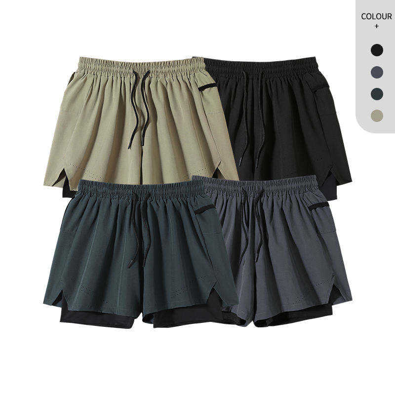 Training Running Blank Two-in-One Double-Layer Custom Men's Fitness Athletic Workout Exercise Shorts Casual Anti-Wrinkle Elastic