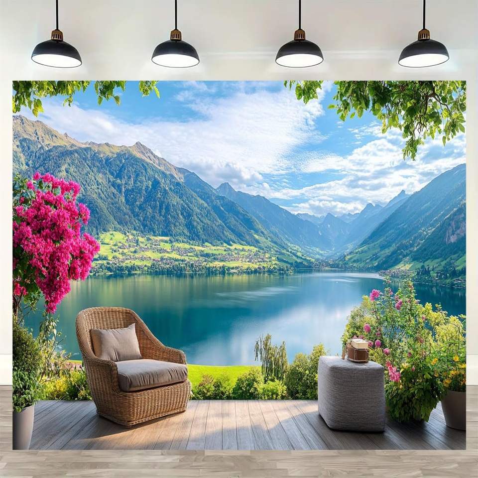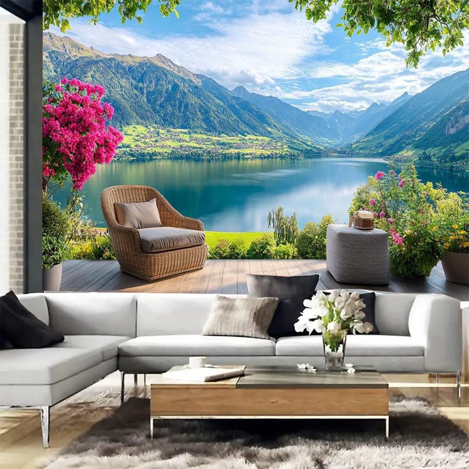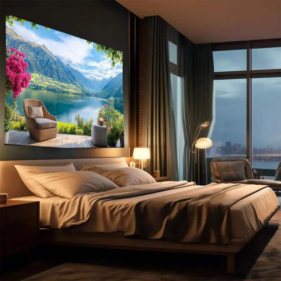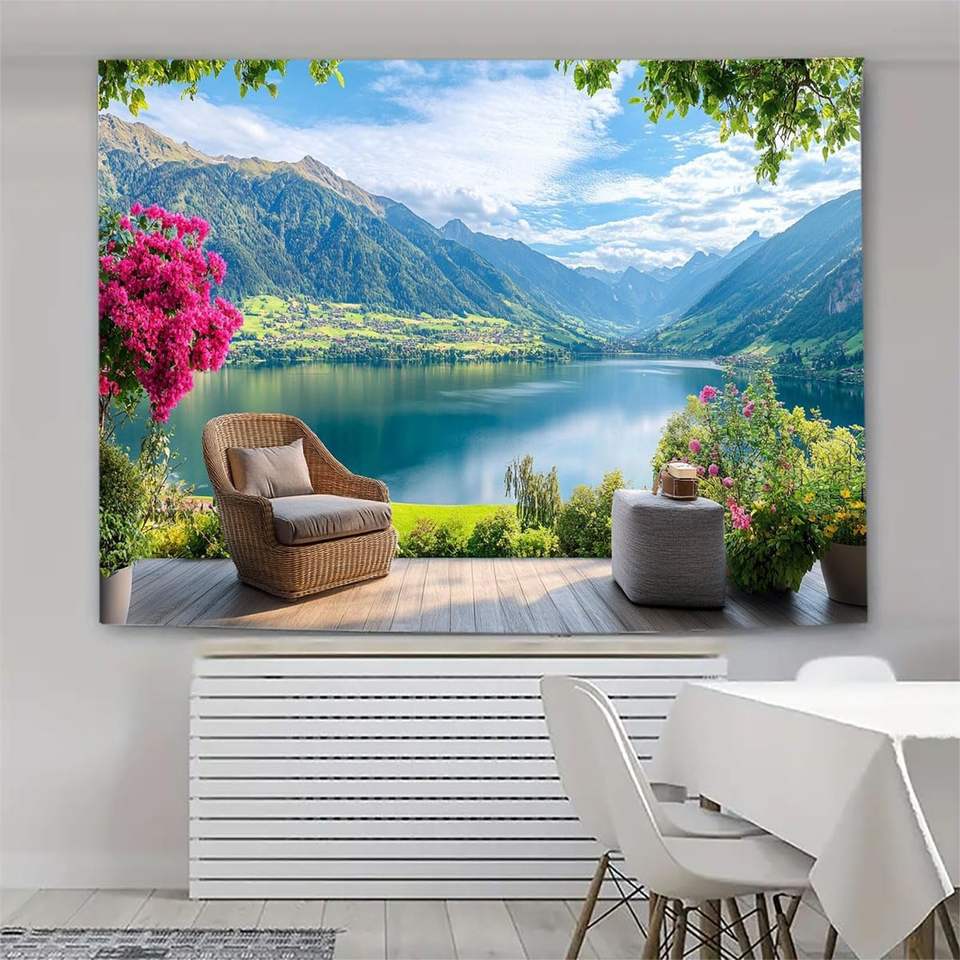 ผ้าห่มพรมแขวนผนังศิลปะต้นไม้ธรรมชาติทะเลสาบหิมะภูเขา