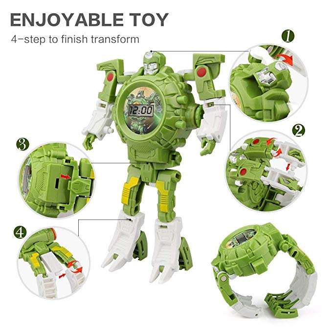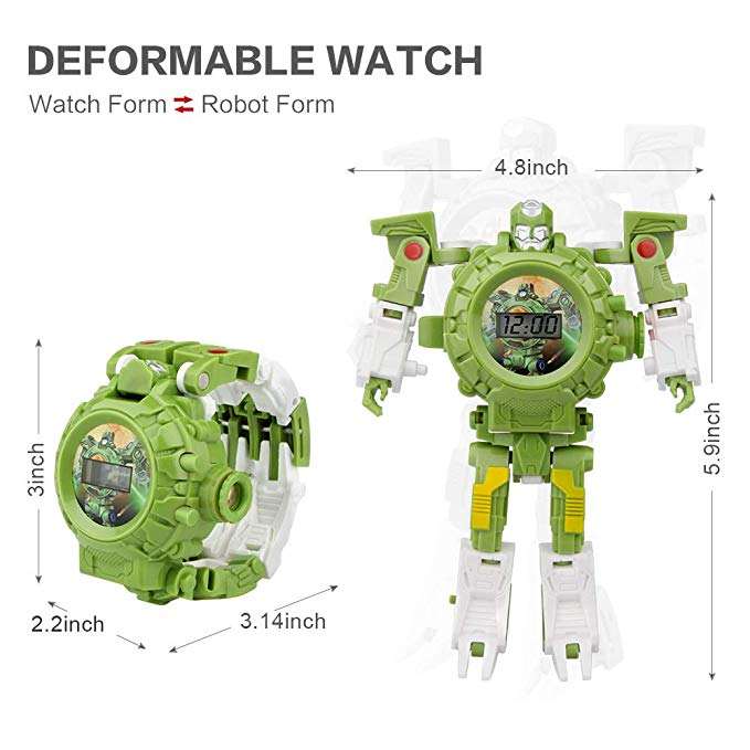 นาฬิกาหุ่นยนต์แปลงร่าง 3 in 1 ฉายภาพ นาฬิกาดิจิตอลสำหรับเด็ก ของเล่นหุ่นยนต์แปลงร่าง สำหรับเด็กชายและเด็กหญิง อายุ 3, 4, 5-10 ปี