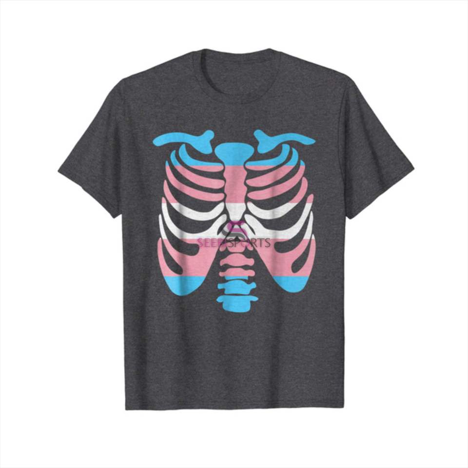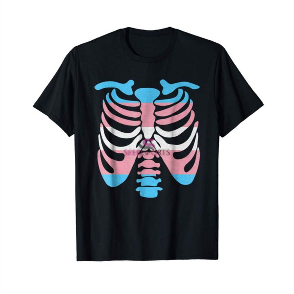 Transgender เสื้อยืดลายธงกรงซี่โครง,เสื้อยืดพิมพ์ลายสำหรับผู้ชายเสื้อยืดผ้าฝ้าย