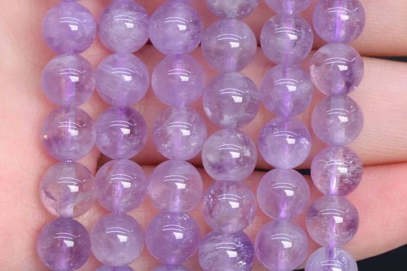ลูกปัดอเมทิสต์สีอ่อนโปร่งแสงจากบราซิล แท้ ธรรมชาติ รูปทรงกลม ขนาด 15 นิ้ว ขายส่งจำนวนมาก
