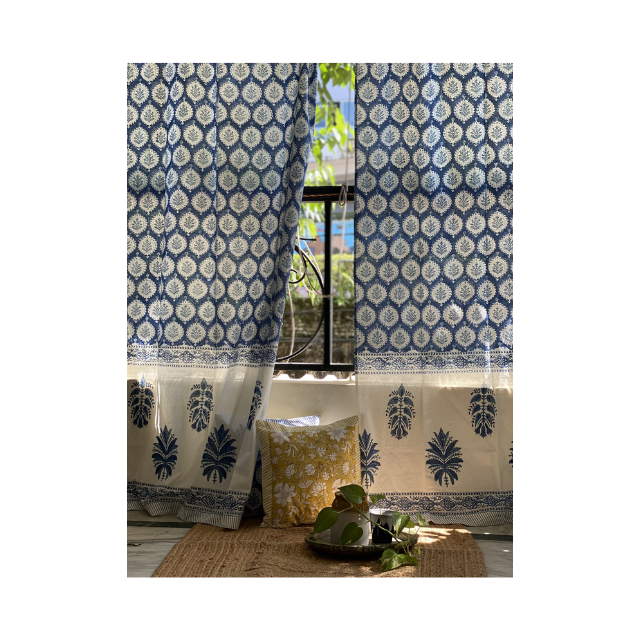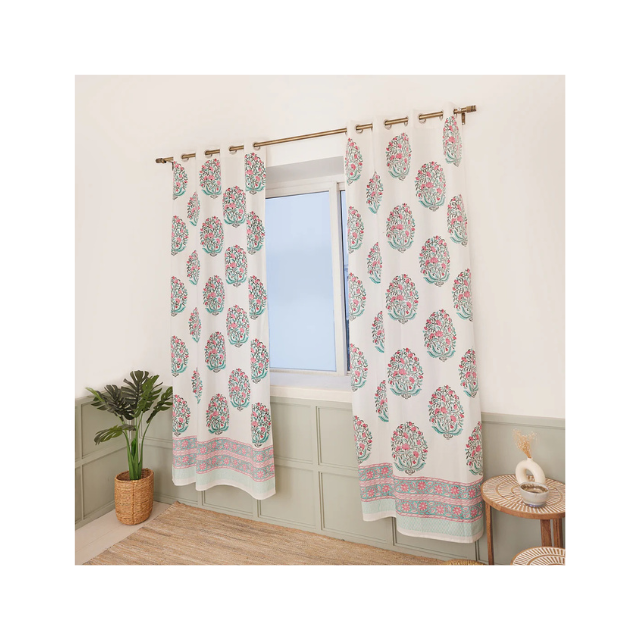 Kantha ศิลปะพื้นเมือง4x7ฟุตผ้าม่านปักรีไซเคิลได้พร้อมผ้าม่านปรับความกว้างได้