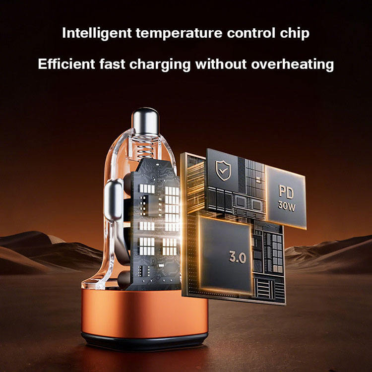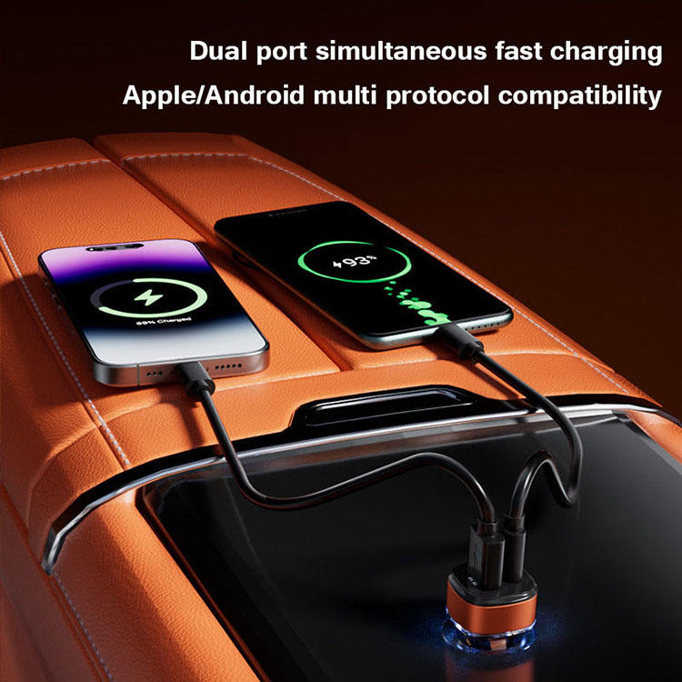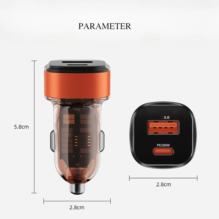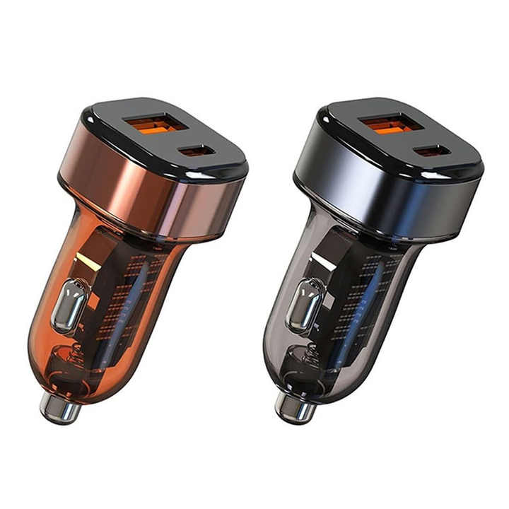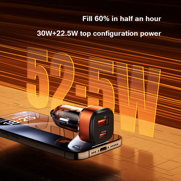 อะแดปเตอร์ที่จุดบุหรี่2พอร์ตสำหรับรถยนต์52.5W โปร่งใสชาร์จเร็ว USB C อะแดปเตอร์ที่ชาร์จสำหรับ iPhone iPad airpods Samsung