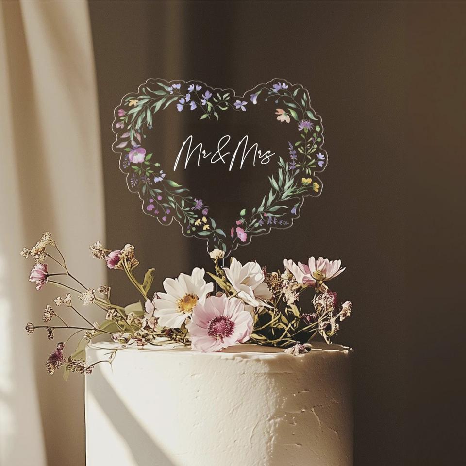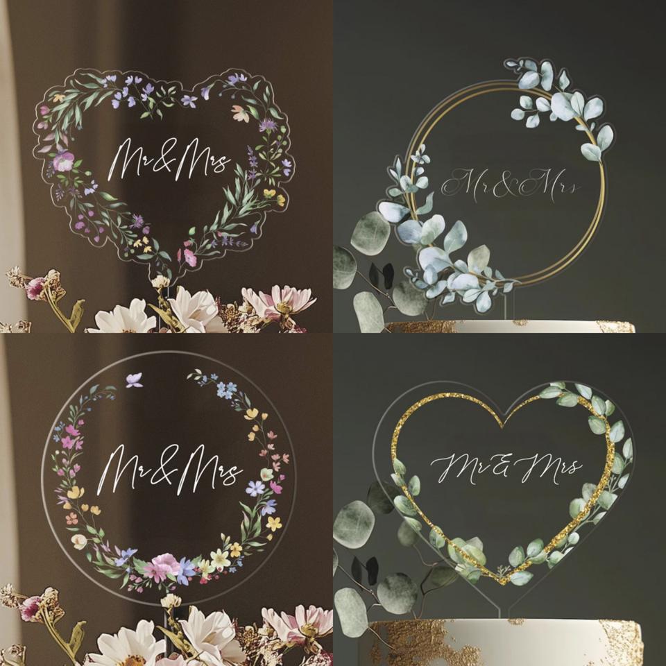 ของตกแต่งหน้าเค้กขนมหวานแบบ DIY ทำจากอะคริลิคใสสามารถกำหนดได้เองสุขสันต์วันเกิดครบรอบแต่งงานด้วยเลเซอร์ของ Mr and MRS