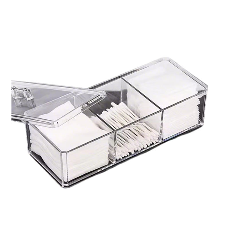 Transparent Acrylic Dresser Organizer with 3 Divided Compartments Clear Cotton Ball Swab Holder Waterproof Bathroom Display Rack