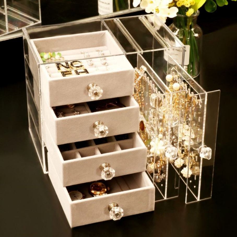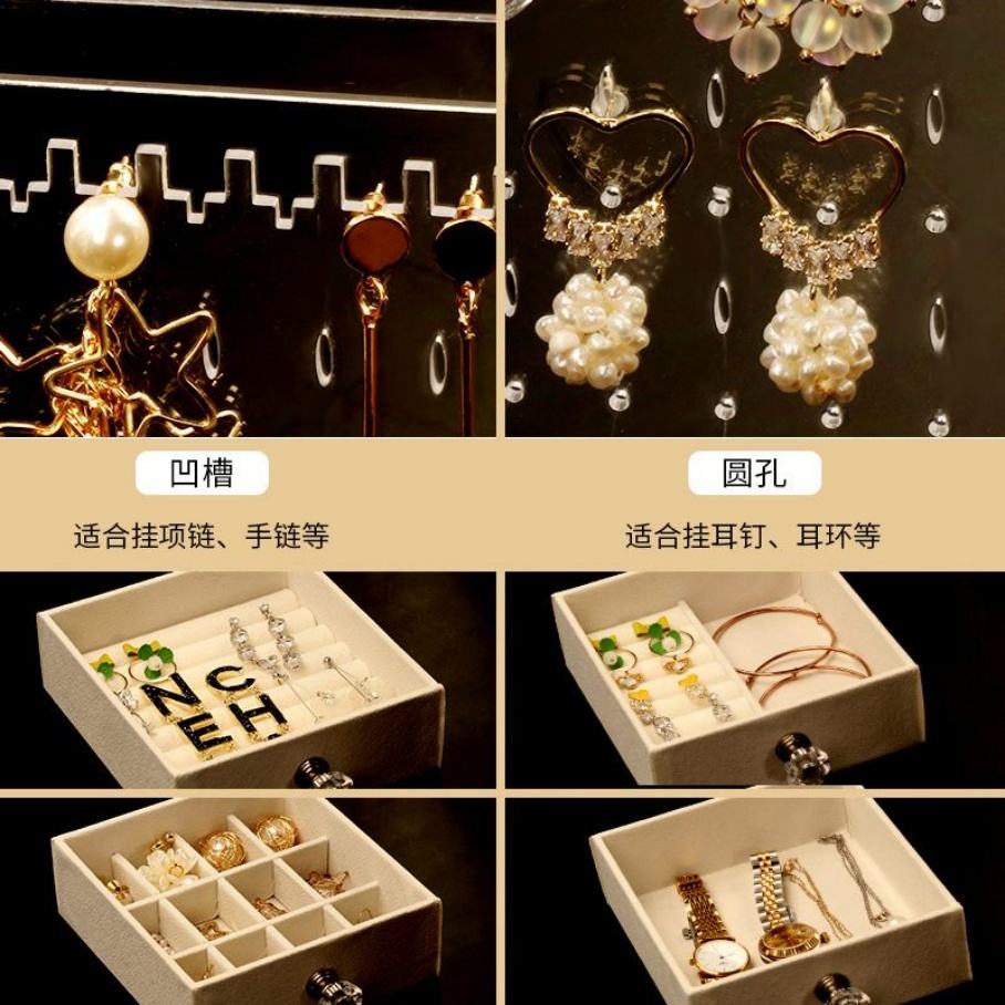 กล่องเก็บเครื่องประดับอะคริลิกใสทันสมัย พร้อมที่แขวนสร้อยคอ แหวน ต่างหู (22x13x18 ซม.)
