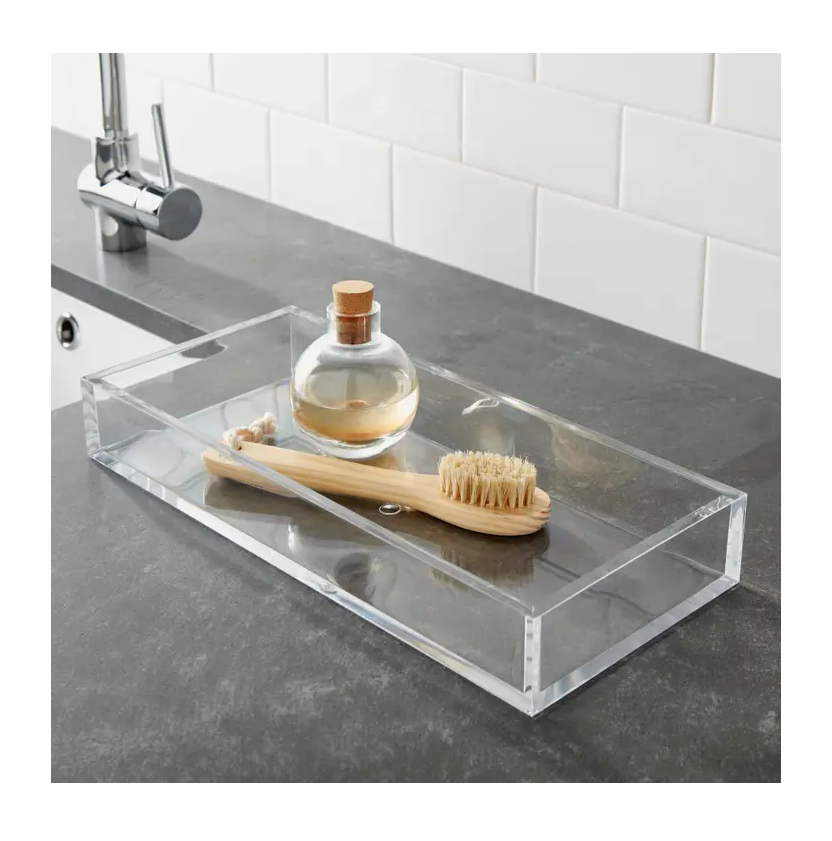ถาดเสิร์ฟอะคริลิคใสถาดอะคริลิกทรงสี่เหลี่ยมผืนผ้าดีไซน์เนอร์