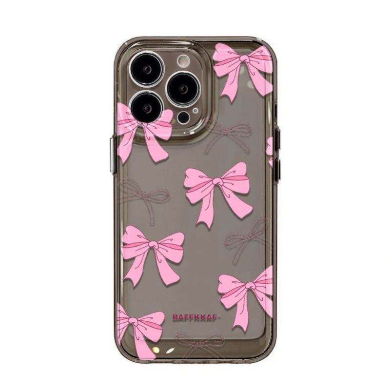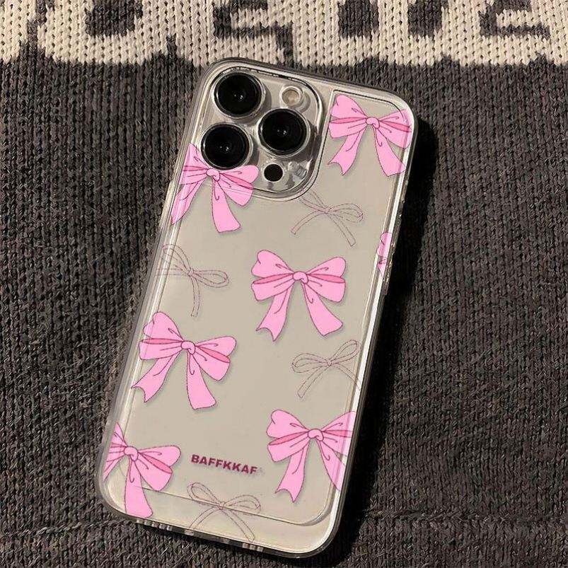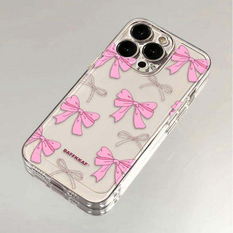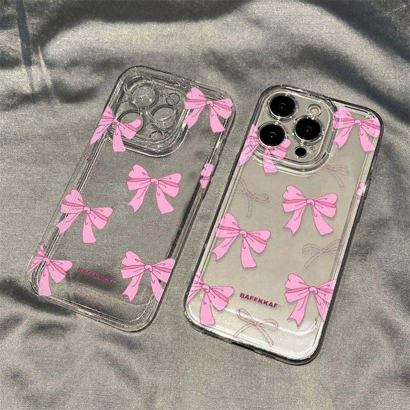 เคสโทรศัพท์ TPU ลายโบว์ริบบิ้นสีชมพูน่ารักสวยงามและโปร่งใสสำหรับ iPhone 16 15 14 13 12 11 PRO MAX โทรศัพท์มือถือกันกระแทก