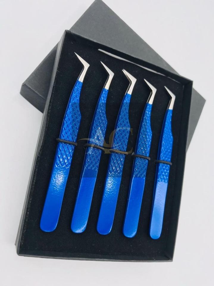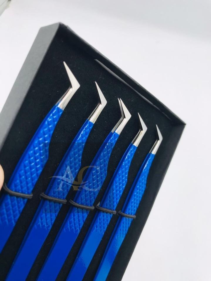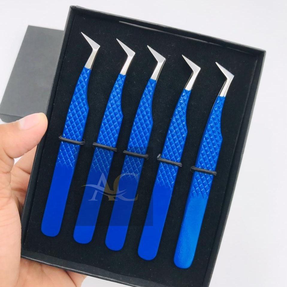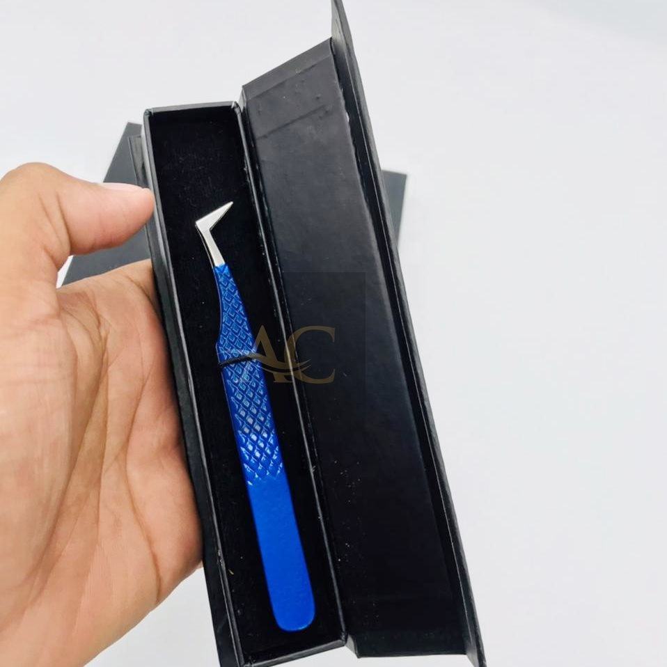 แหนบต่อขนตาปลอมแบบมืออาชีพสีฟ้าใสมีคุณภาพสูงทำจากสเตนเลสสตีลทรงเพชรแหลมออกแบบโลโก้ได้ตามต้องการ