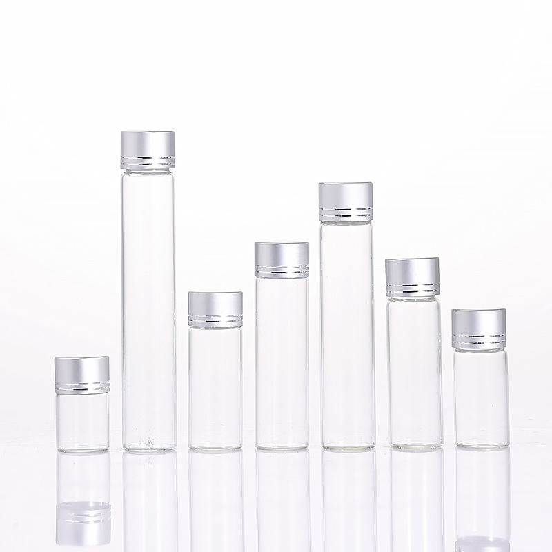 Transparent Borosilicate Test Tube Glass Bottle Flat Round Bottom with Aluminum Screw Caps