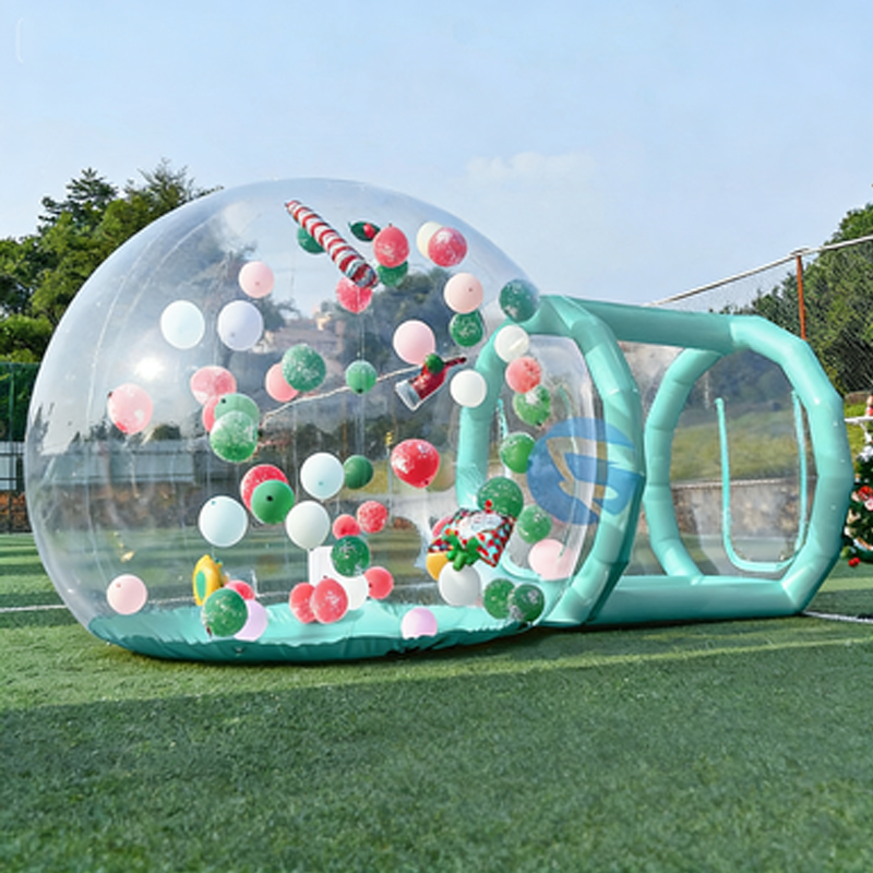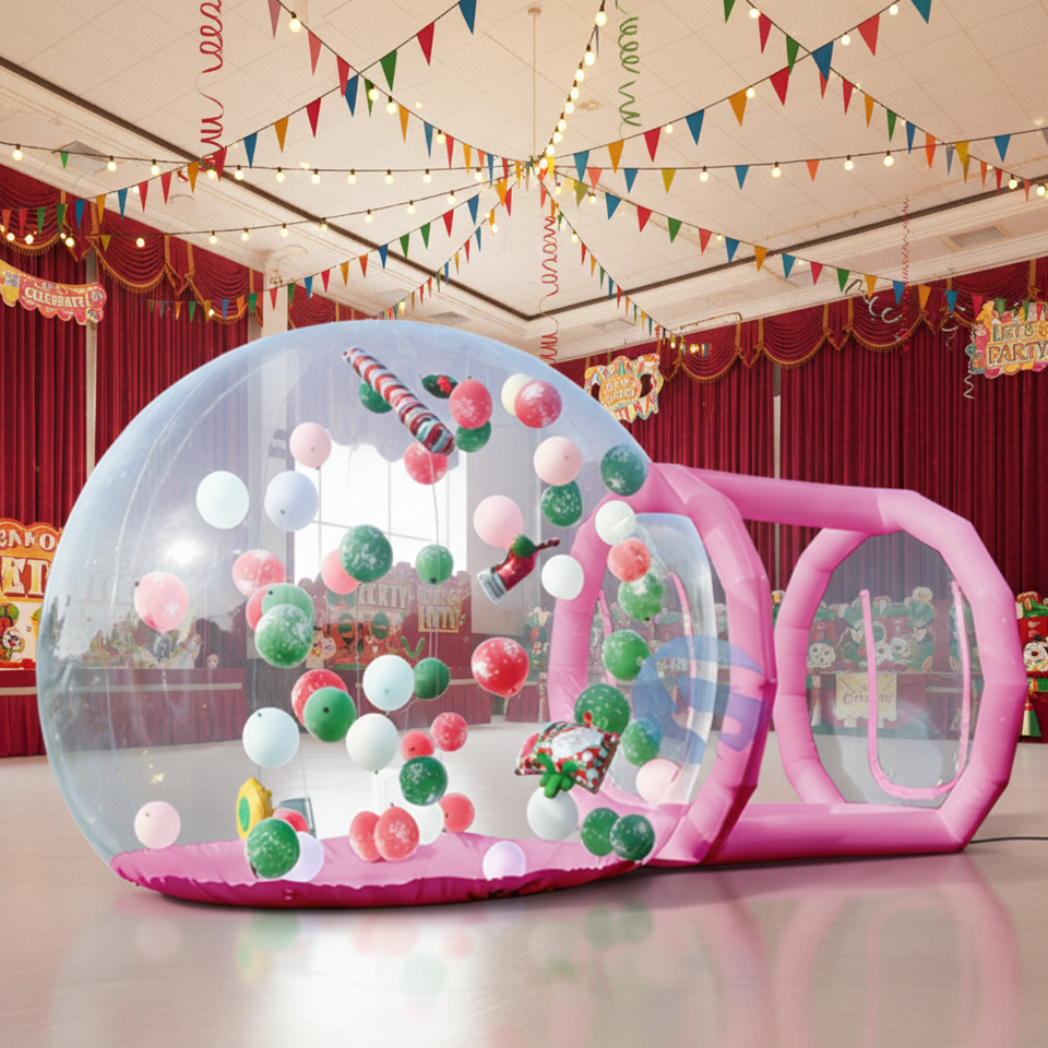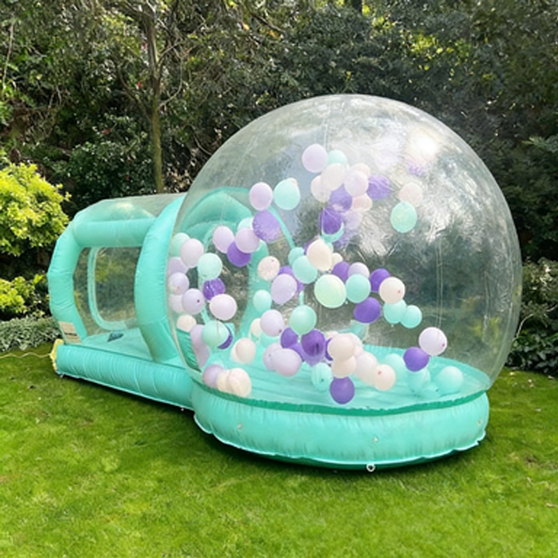 บ้านบอลใสพองลมพร้อมสระบอล วิวพาโนรามา และเบาะนุ่มสำหรับเด็ก สนุกปลอดภัย