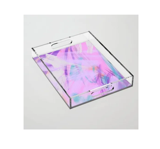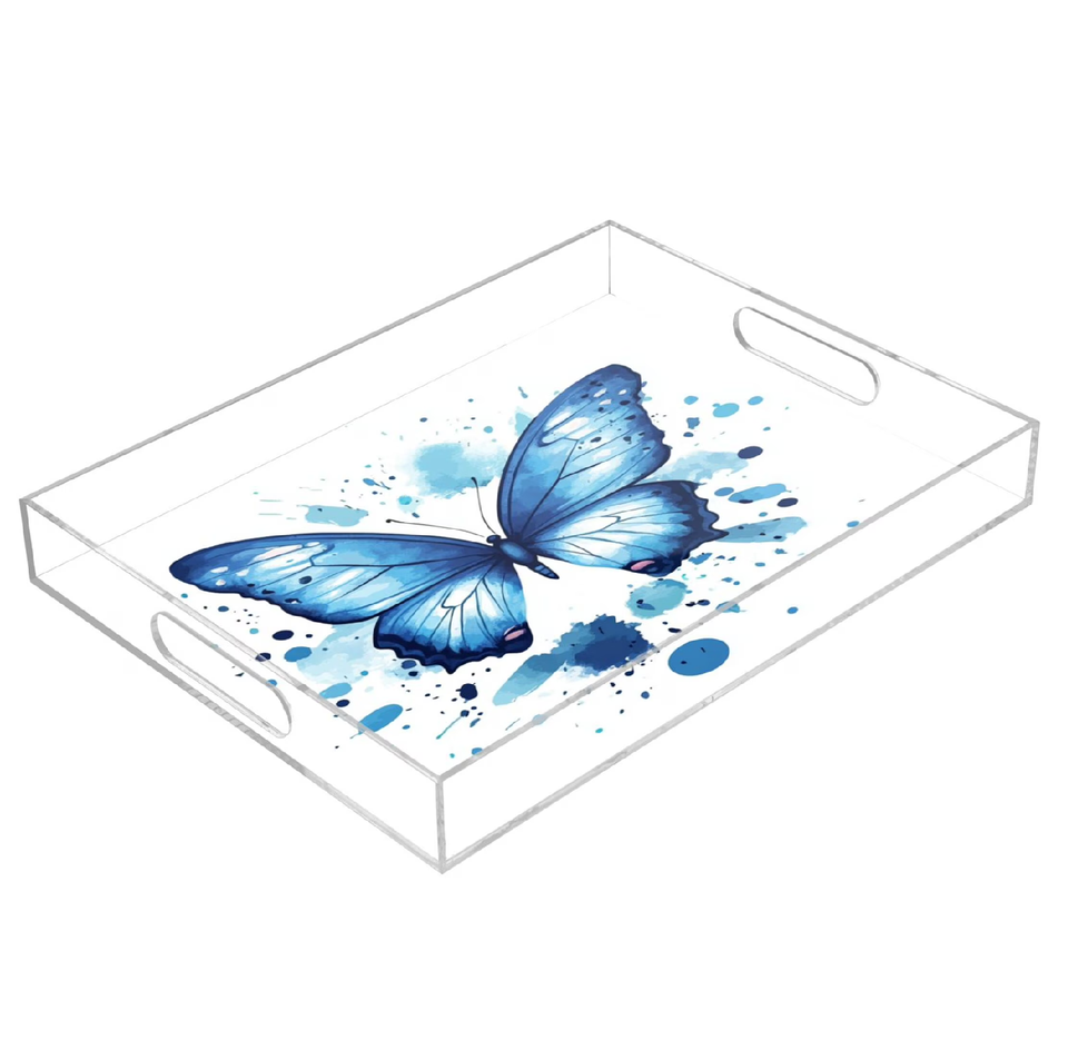 ถาดอะคริลิคใสลายผีเสื้อสำหรับวันเด็ก ใช้โชว์ขนมและช็อกโกแลต มีหูจับ ราคาประหยัด