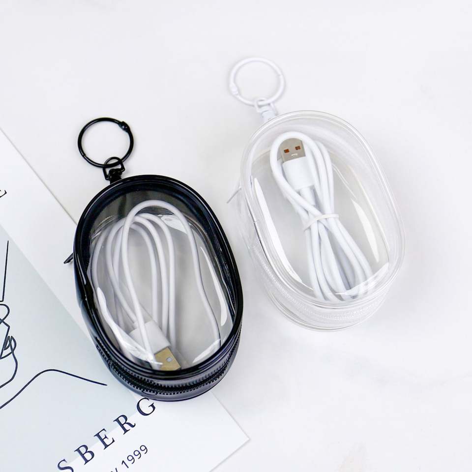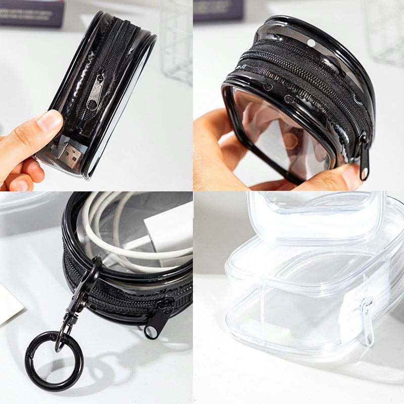 กระเป๋าจัดเก็บสายชาร์จแบบใส กล่องสุ่มขนาดเล็ก พร้อมตะขอเกี่ยว กล่องเก็บสายหูฟังแบบพกพา กระเป๋าป้องกันสายเคเบิลสำหรับเดินทาง