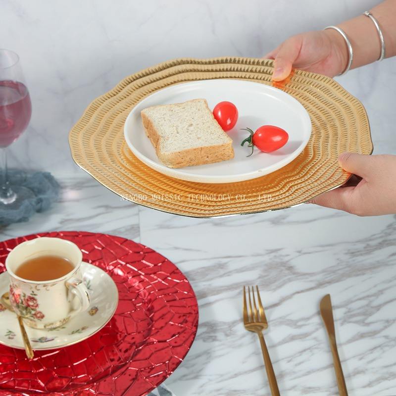 แผ่นชาร์จสีทองพลาสติกแบบใช้แล้วทิ้งสำหรับงานแต่งงานงานหัตถกรรมโปร่งใสตกแต่งสำหรับโรงแรม