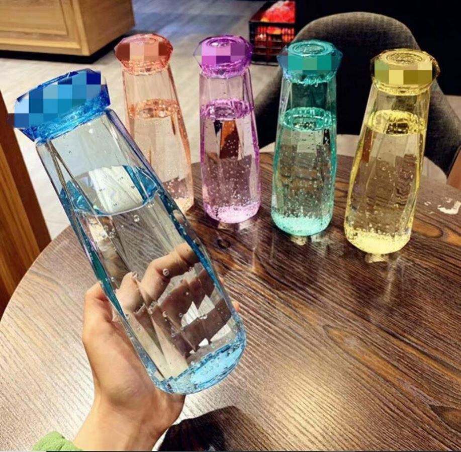 แก้วคริสตัลใสทรงแก้วสำหรับคู่รักขวดแก้วสีสันสดใสขวดน้ำแนวสปอร์ตถ้วยที่มีประโยชน์