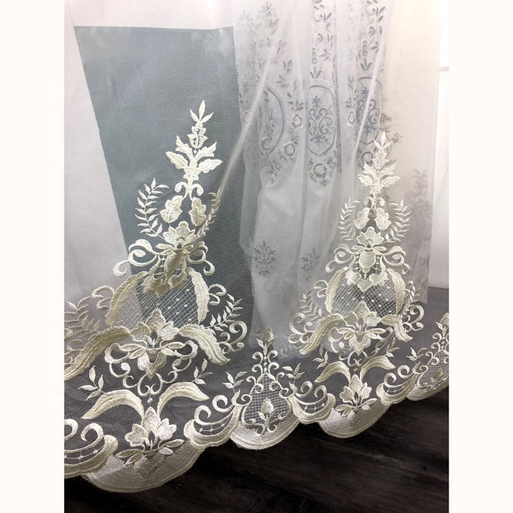 ผ้าม่านตาไก่สีขาวใส 100% โพลีเอสเตอร์ เป็นมิตรกับสิ่งแวดล้อม ลายปักทันสมัย หรูหรา พร้อมฉนวนกันความร้อน ใช้ได้ทุกฤดู
