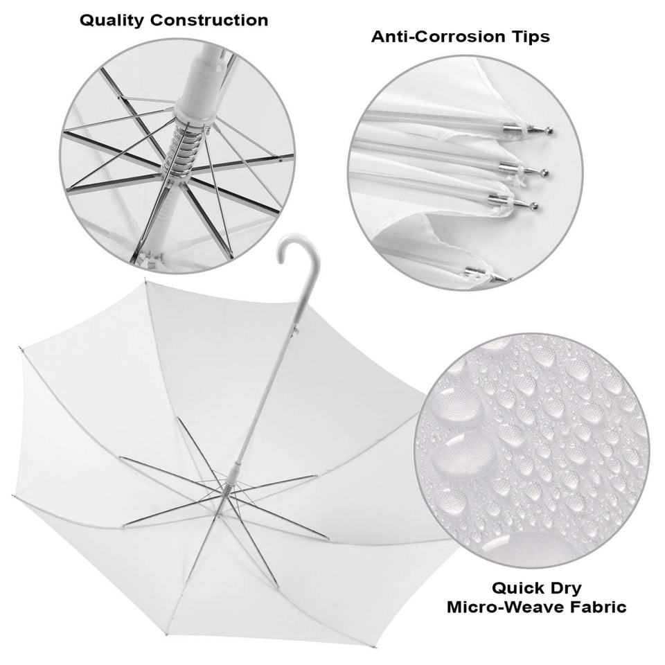 ร่มพับใส 23 นิ้ว พลาสติกใสสีขาว ด้ามจับแบบ J Hook วัสดุ POE เปิดอัตโนมัติ ร่มตรง