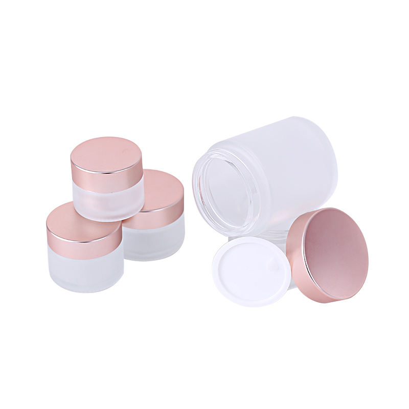 ขวดครีมแก้วใสฝ้าขนาด 1 ออนซ์ 2 ออนซ์ สำหรับเครื่องสำอาง พร้อมฝาสีทอง