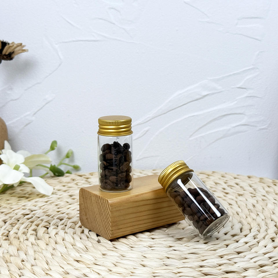 หลอดแก้วใสพร้อมฝาเกลียวอะลูมิเนียมติดฉลากสี