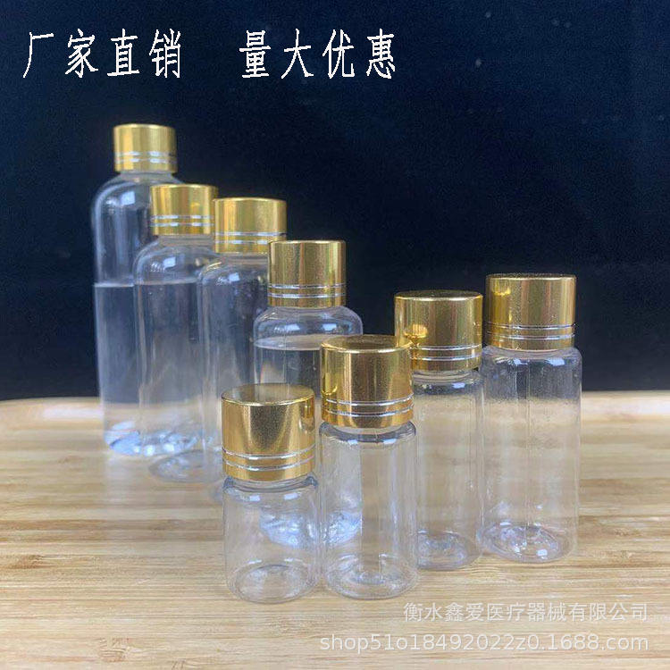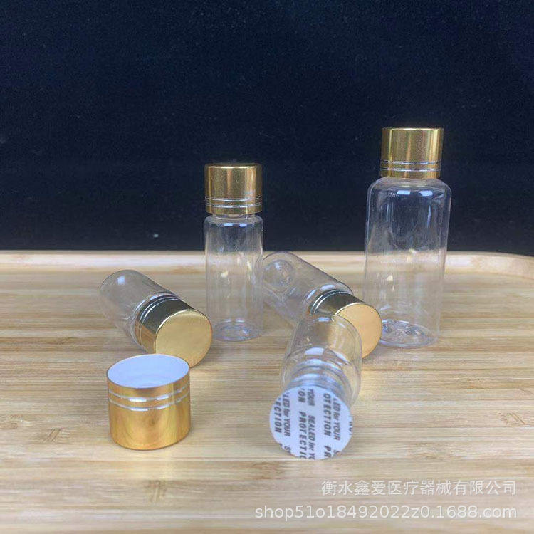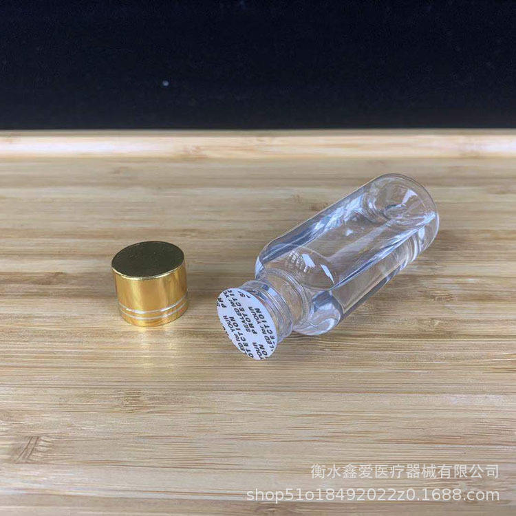 ขวด PET ขอบสีทองใส ขนาด 10 20 30 50 มล. ปากขวดเล็ก ปิดผนึกได้ สำหรับจ่ายตัวอย่างในห้องปฏิบัติการ