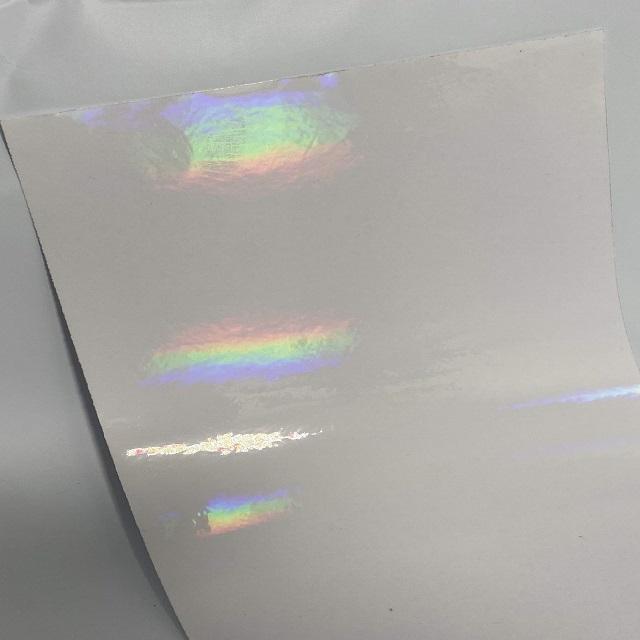 ฟิล์มเคลือบไวนิลโฮโลแกรมใสสำหรับสติกเกอร์กาวในซูเปอร์มาร์เก็ตพร้อมเอฟเฟกต์สีรุ้ง