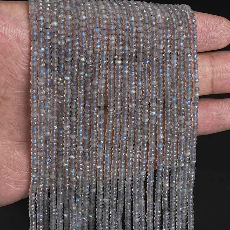 ลูกปัดลาบราดอไรต์ใส แท้จากธรรมชาติ ร้อยเป็นเส้นเต็มเม็ด ทรงเหลี่ยม รอนเดลล์ ลูกปัดหลวม 15 นิ้ว ขายส่งจำนวนมาก